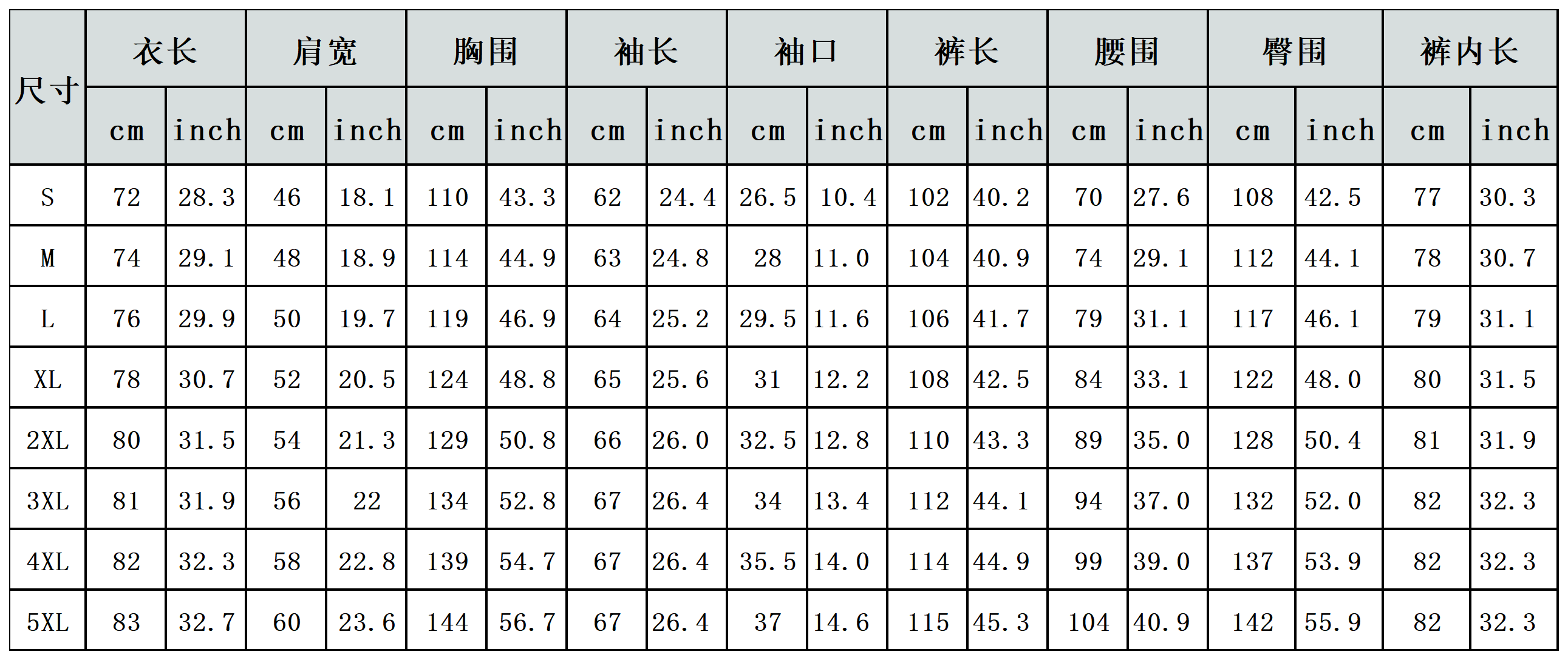 【特别说明】此尺码数据在衣服平铺下测量所得,因测量方法不同,误差在1-3cm内的属于正常现象