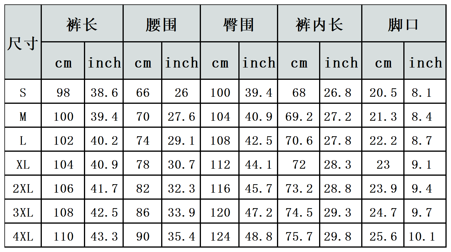 【特别说明】此尺码数据在衣服平铺下测量所得,因测量方法不同,误差在1-3cm内的属于正常现象
