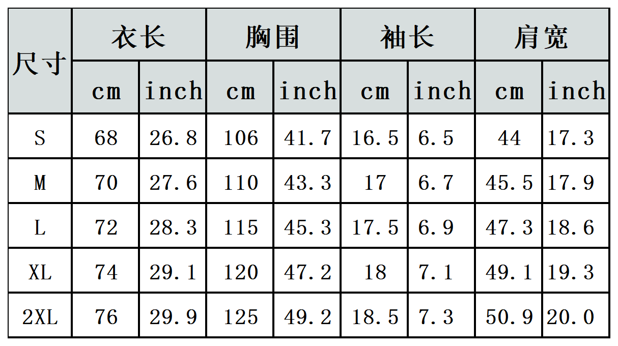 【特别说明】此尺码数据在衣服平铺下测量所得,因测量方法不同,误差在1-3cm内的属于正常现象