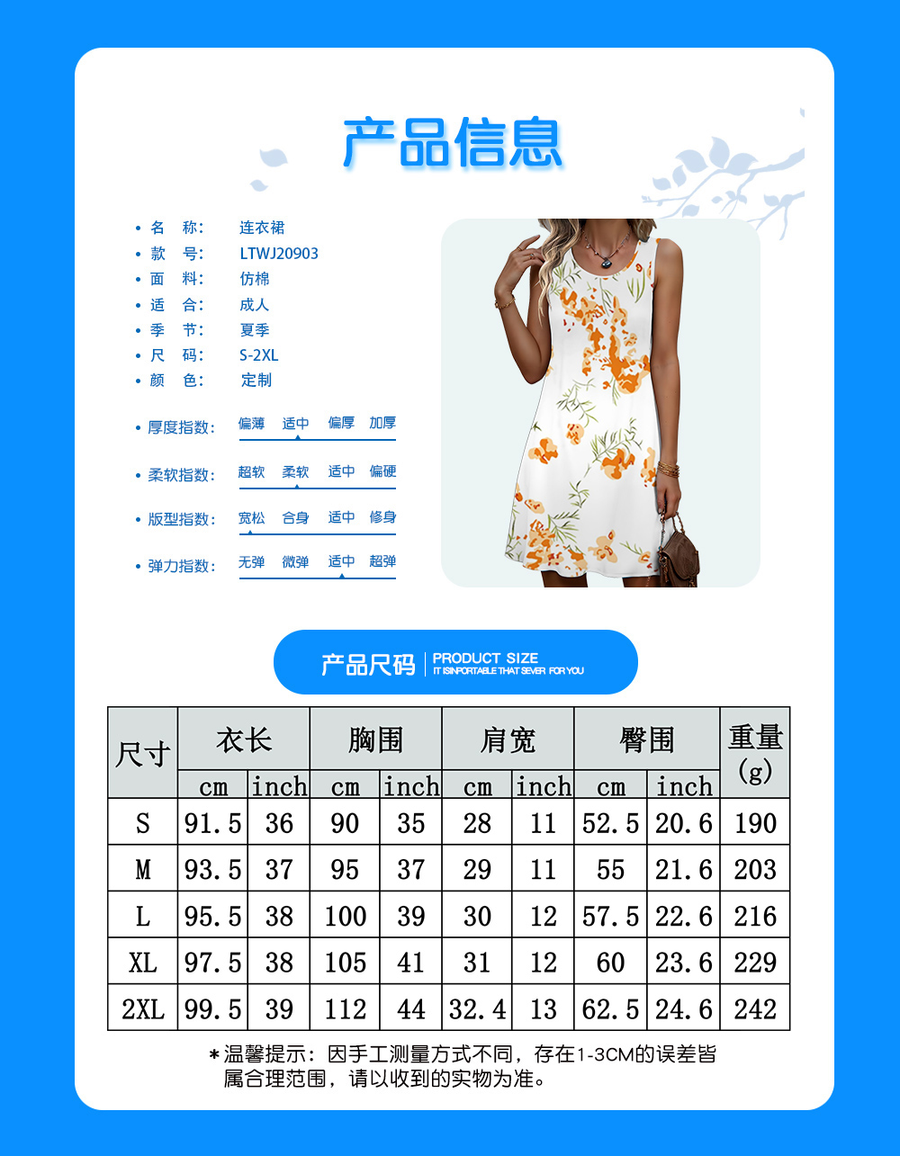中文名称:连衣裙英文名称:产品货号:LTWJ20903生产工艺: 满印印花产品材质:仿棉