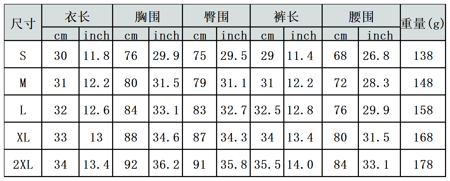 【特别说明】此尺码数据因测量方法不同,误差在1-3cm内的属于正常现象。