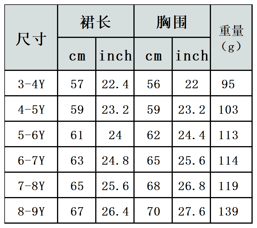 【特别说明】此尺码数据因测量方法不同,误差在1-3cm内的属于正常现象。