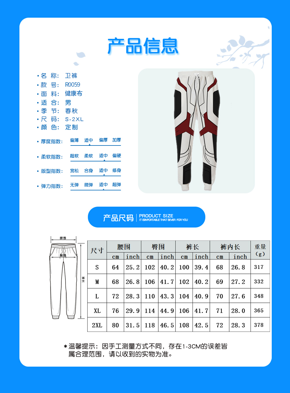 中文名称:3D 卫裤英文名称:产品货号:R0059生产工艺: 满印印花产品材质:空气层