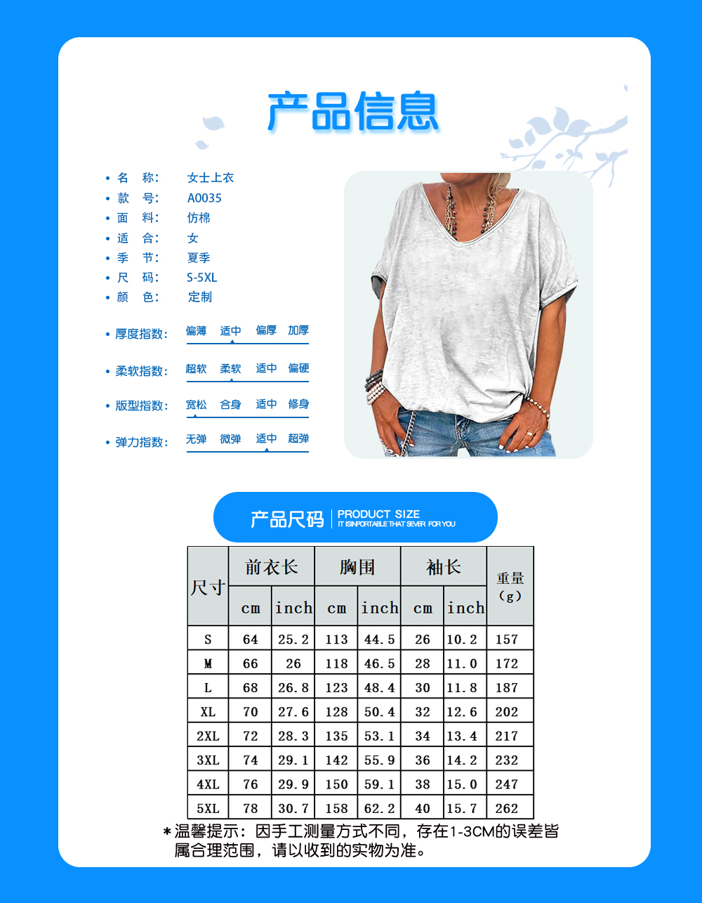 中文名称:女士上衣英文名称:产品货号:A0035生产工艺: 满印印花产品材质: 涤纶(Polyester)