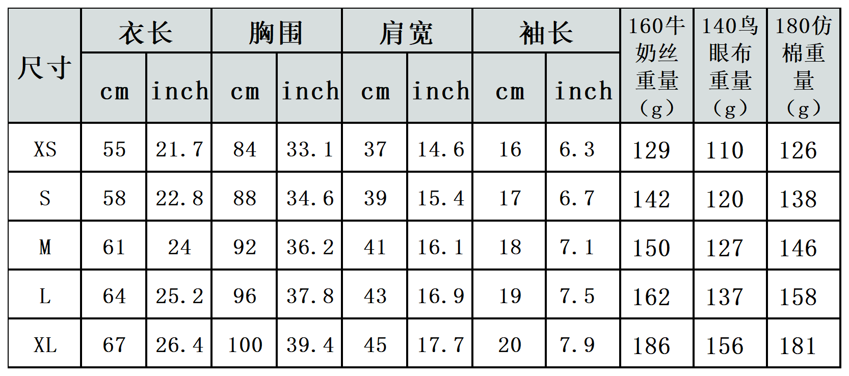 【特别说明】此尺码数据因测量方法不同,误差在1-3cm内的属于正常现象。