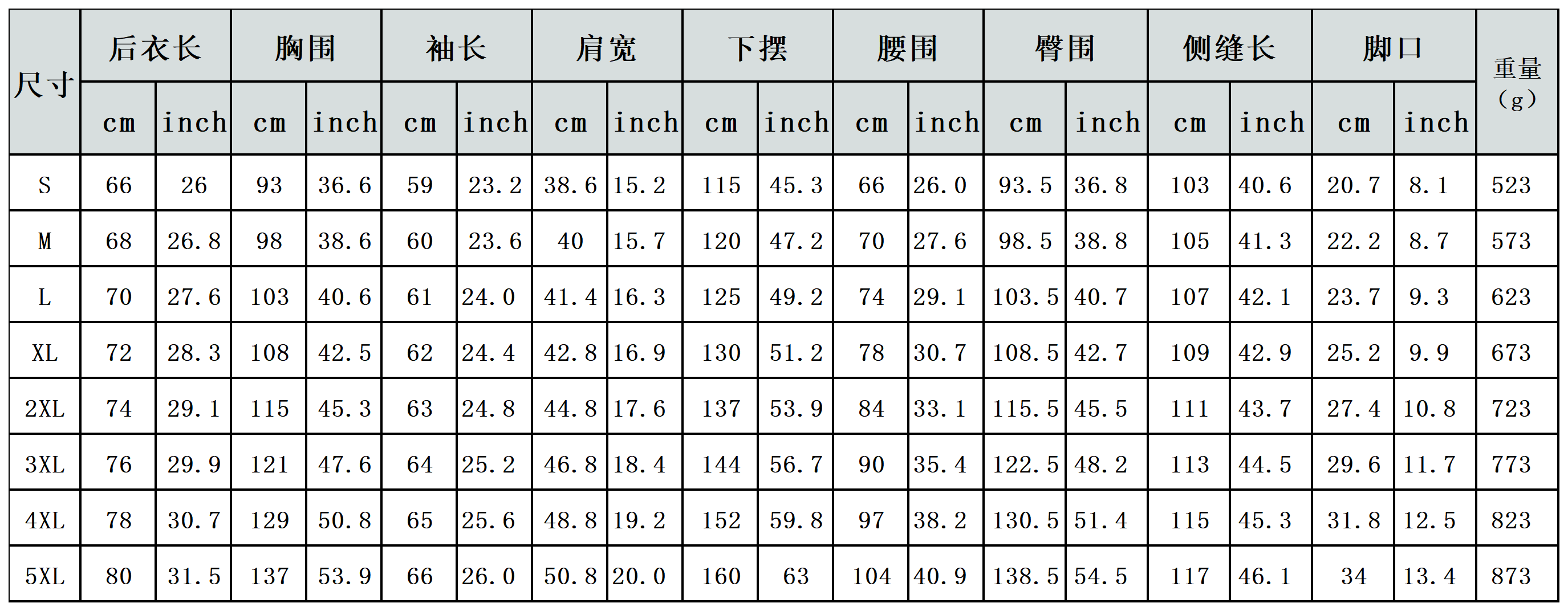 【特别说明】此尺码数据在衣服平铺下测量所得,因测量方法不同,误差在1-3cm内的属于正常现象