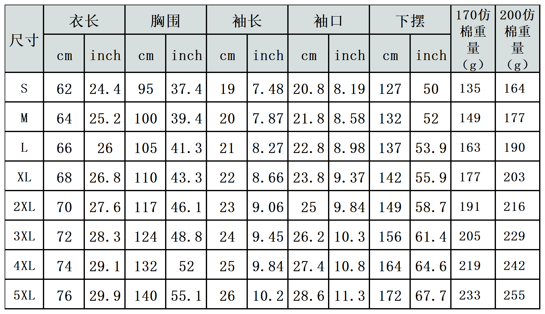 【特别说明】此尺码数据在衣服平铺下测量所得,因测量方法不同,误差在1-3cm内的属于正常现象。