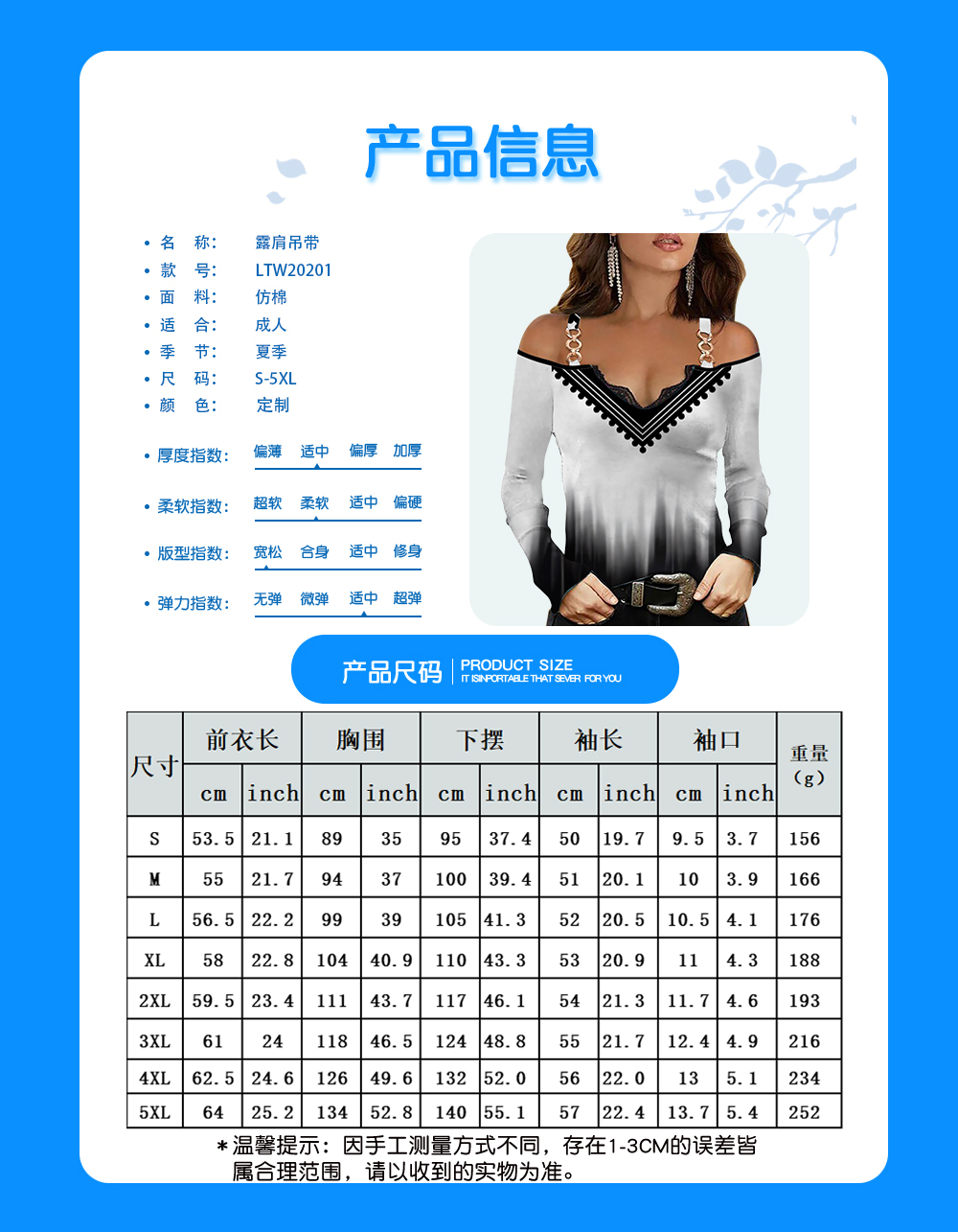 中文名称:露肩吊带英文名称:产品货号:LTW20201生产工艺: 满印印花产品材质: 仿棉