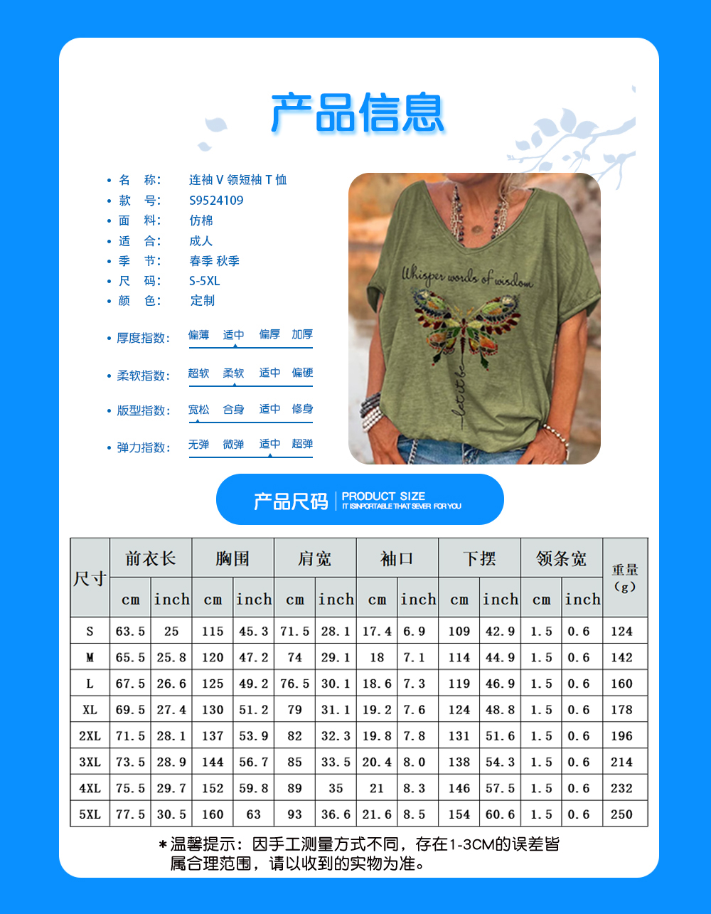 中文名称:连袖V领短袖T恤英文名称:产品货号:S9524109生产工艺: 满印印花产品材质: 涤纶(Polyester)