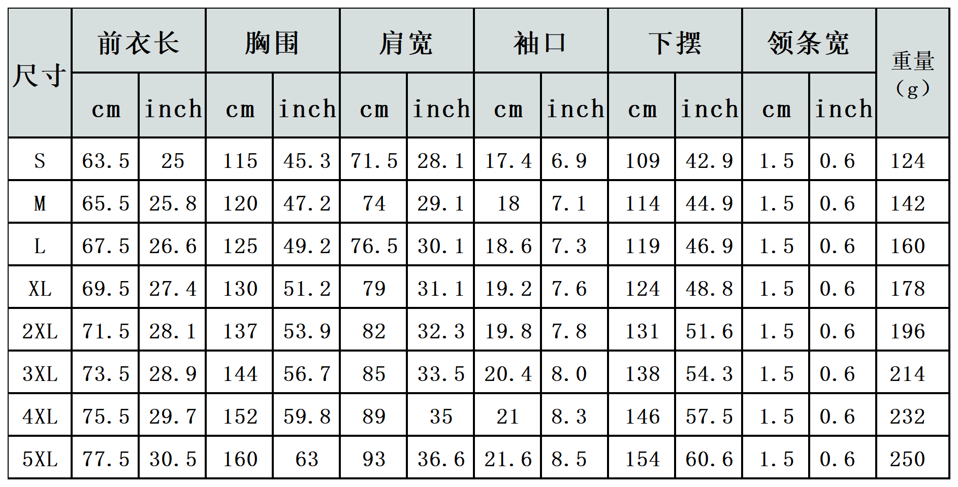 【特别说明】此尺码数据在衣服平铺下测量所得,因测量方法不同,误差在1-3cm内的属于正常现象。