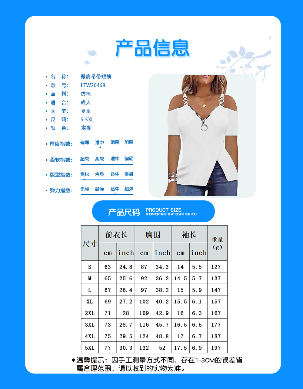 中文名称:V领装拉链吊带T恤英文名称:产品货号:LTW20468生产工艺: 满印印花产品材质: 仿棉