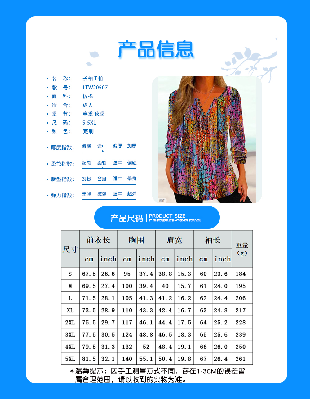 中文名称:长袖T恤英文名称:产品货号:LTW20507生产工艺: 满印印花产品材质: 涤纶(Polyester)
