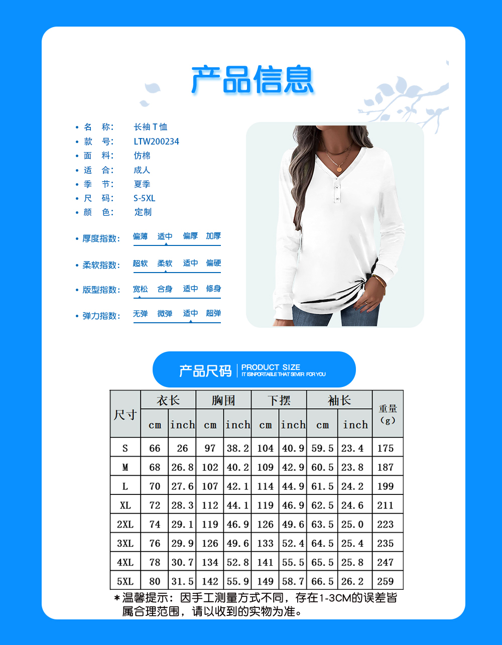 中文名称:女仿棉长袖T恤英文名称:产品货号:LTW200234生产工艺: 满印印花产品材质: 涤纶(Polyester)