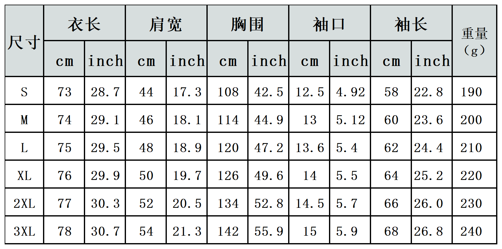 【特别说明】此尺码数据在衣服平铺下测量所得,因测量方法不同,误差在1-3cm内的属于正常现象