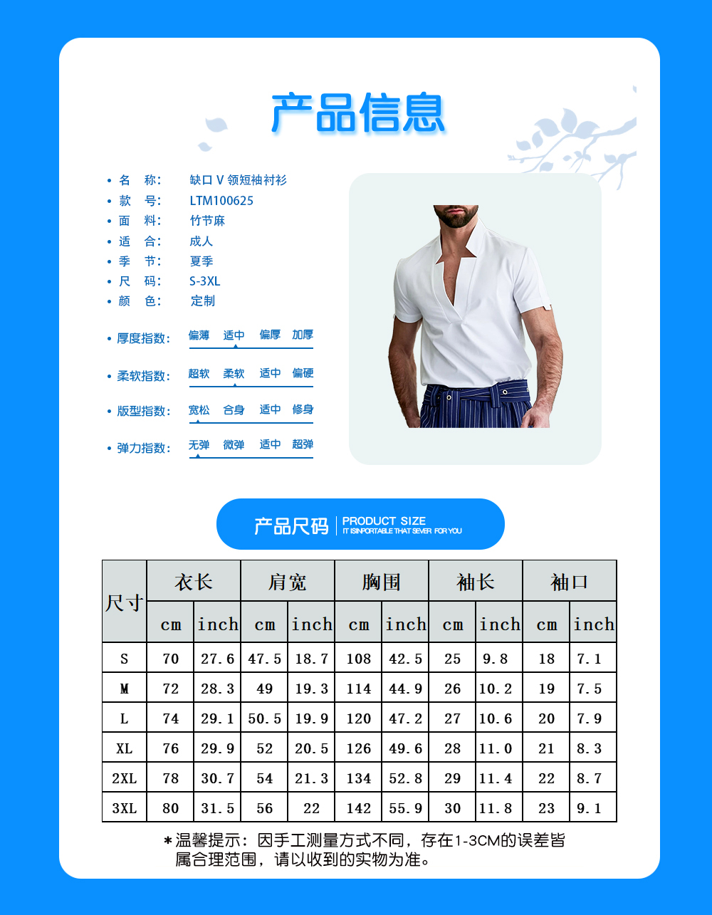 中文名称:缺口V领短袖衬衫英文名称:产品货号:LTM100625生产工艺: 满印印花产品材质: 涤纶(Polyester)