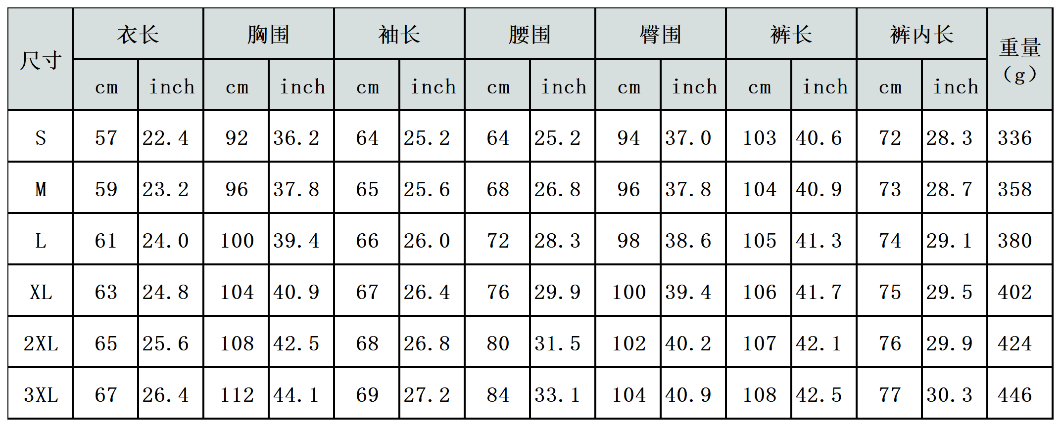 【特别说明】此尺码数据在衣服平铺下测量所得,因测量方法不同,误差在1-3cm内的属于正常现象