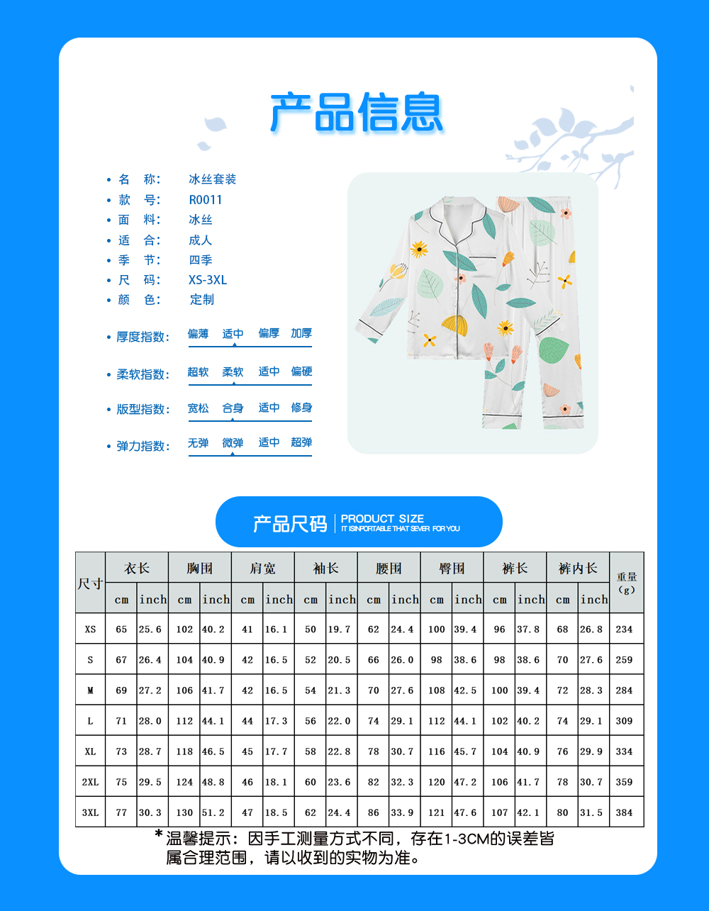 中文名称:冰丝套装英文名称: Ice silk suit产品货号:R0011生产工艺: 满印印花产品材质: 涤纶(Polyester)
