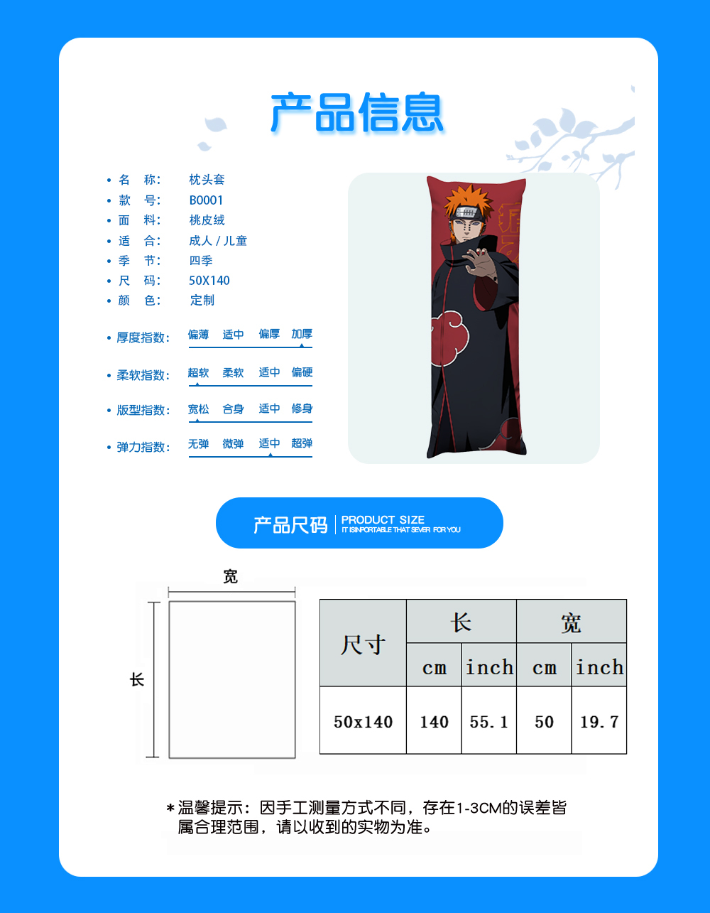 中文名称: 3D 桃皮绒抱枕套 50X140cm英文名称: pillow case产品编号:B0001生产工艺: 满印印花产品材质:桃皮绒