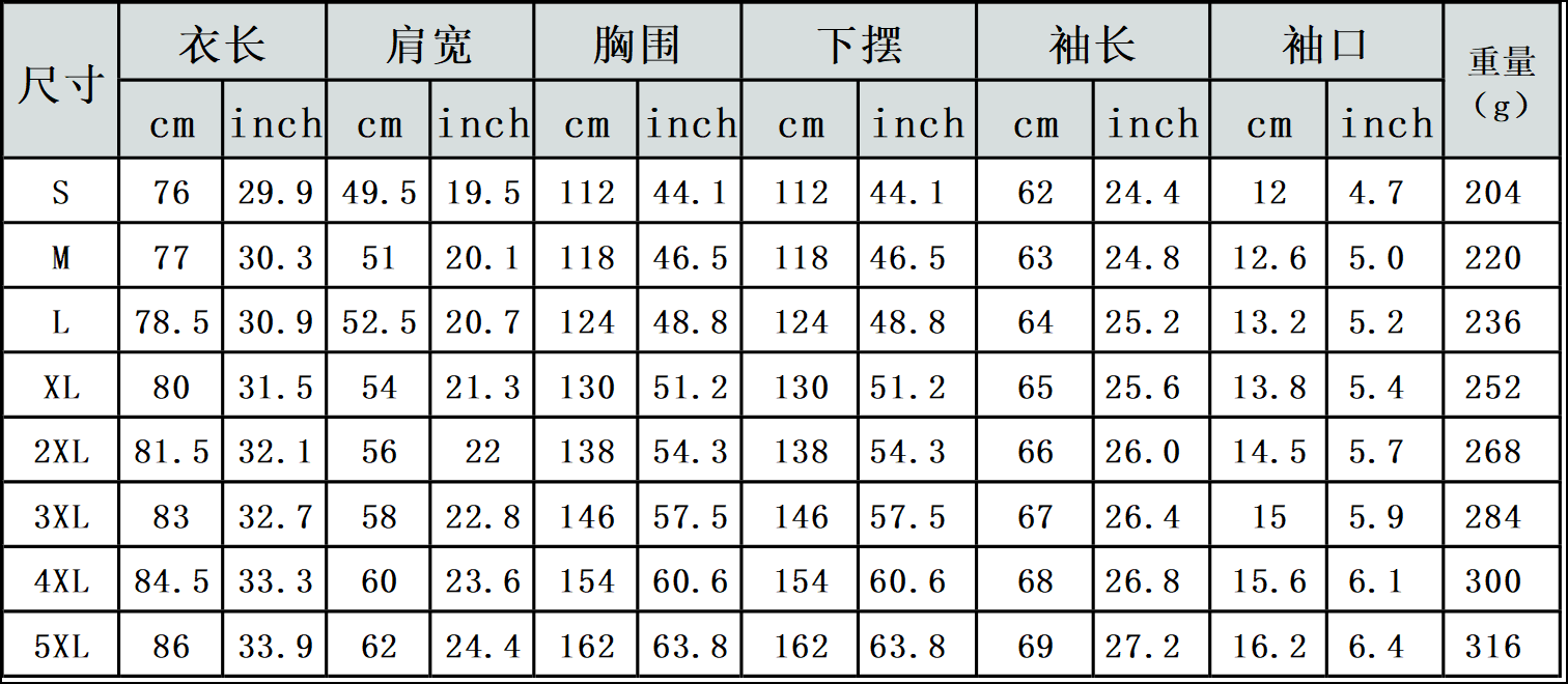 【特别说明】此尺码数据在衣服平铺下测量所得,因测量方法不同,误差在1-3cm内的属于正常现象