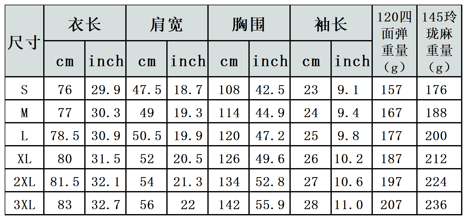 【特别说明】此尺码数据在衣服平铺下测量所得,因测量方法不同,误差在1-3cm内的属于正常现象