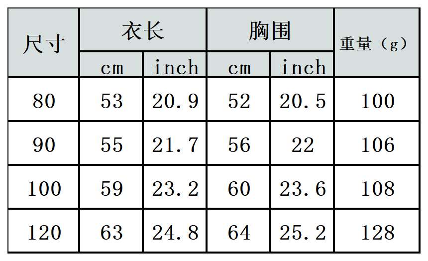 【特别说明】 此尺码数据在衣服平铺下测量所得,因测量方法不同,误差在1-3cm内的属于正常现象