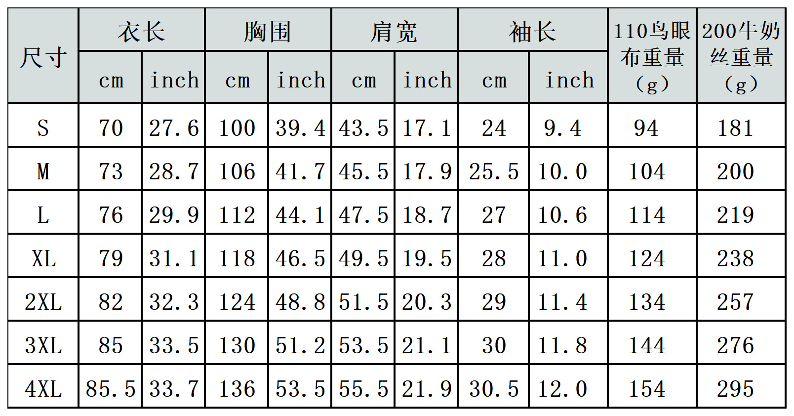【特别说明】此尺码数据在衣服平铺下测量所得,因测量方法不同,误差在1-3cm内的属于正常现象。