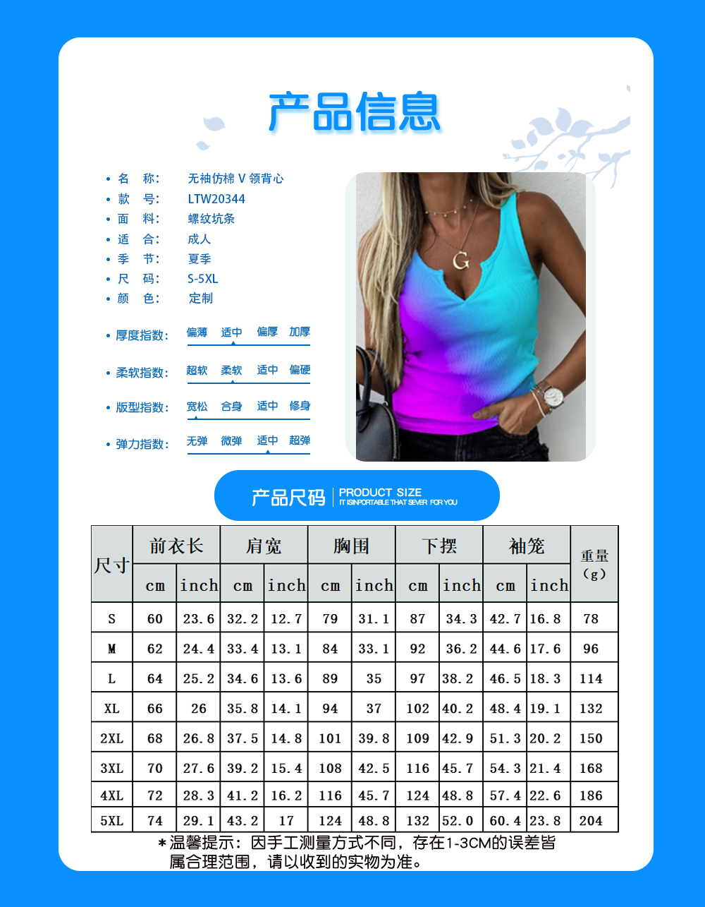 中文名称:V领背心英文名称:产品货号:LTW20344