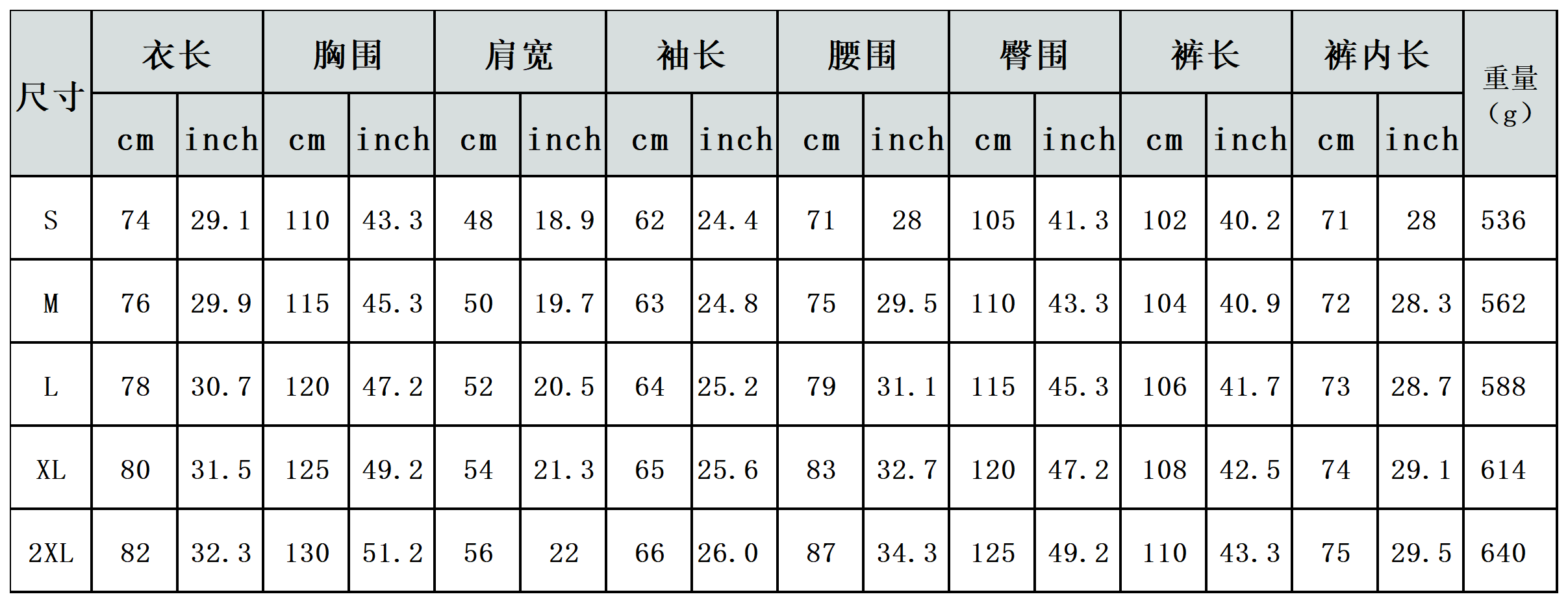 【特别说明】此尺码数据在衣服平铺下测量所得,因测量方法不同,误差在1-3cm内的属于正常现象