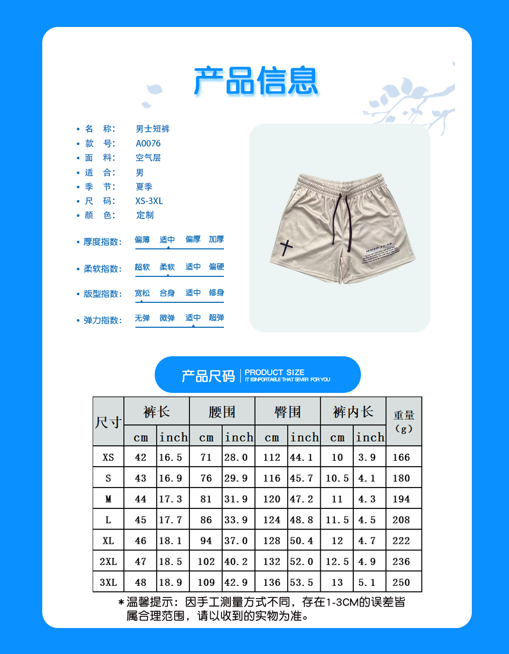 中文名称:男士短裤英文名称:产品货号:A0076生产工艺: 满印印花产品材质:空气层