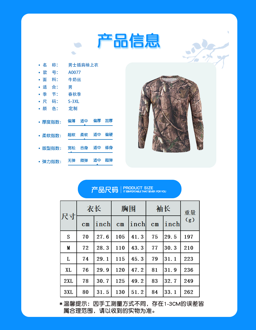 中文名称:男士插肩袖上衣英文名称:产品货号:A0077生产工艺: 满印印花产品材质:牛奶丝