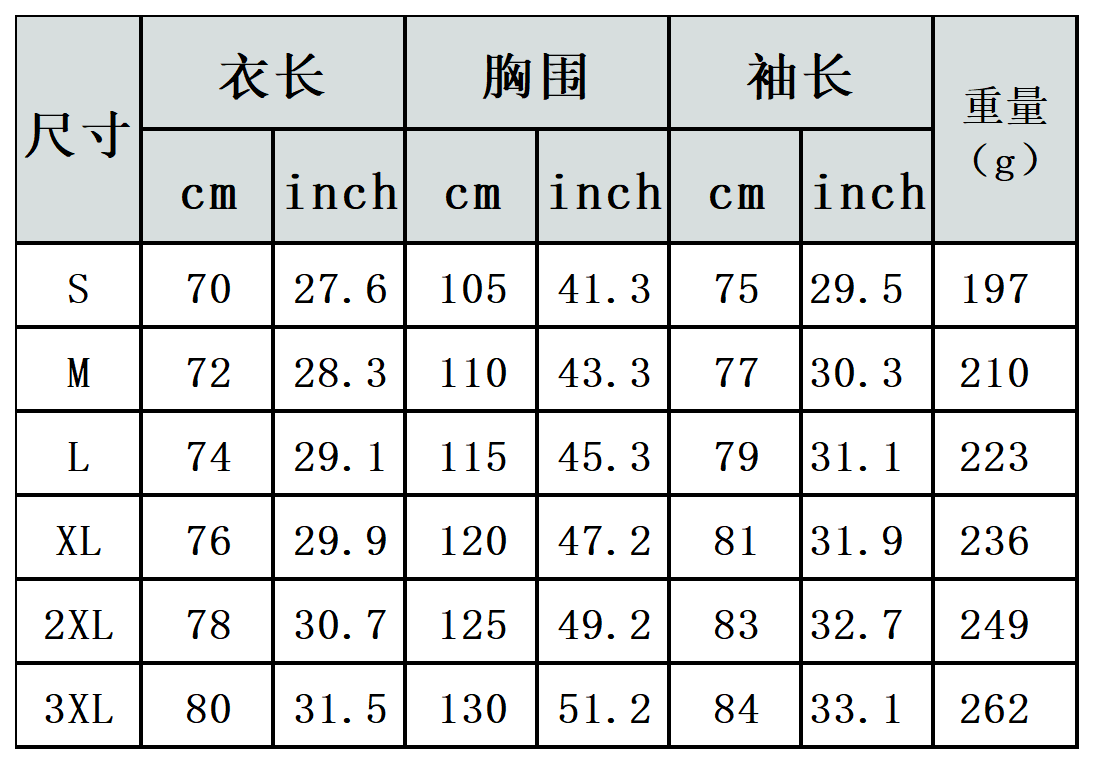 【特别说明】此尺码数据在衣服平铺下测量所得,因测量方法不同,误差在1-3cm内的属于正常现象