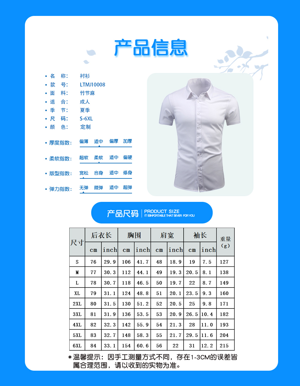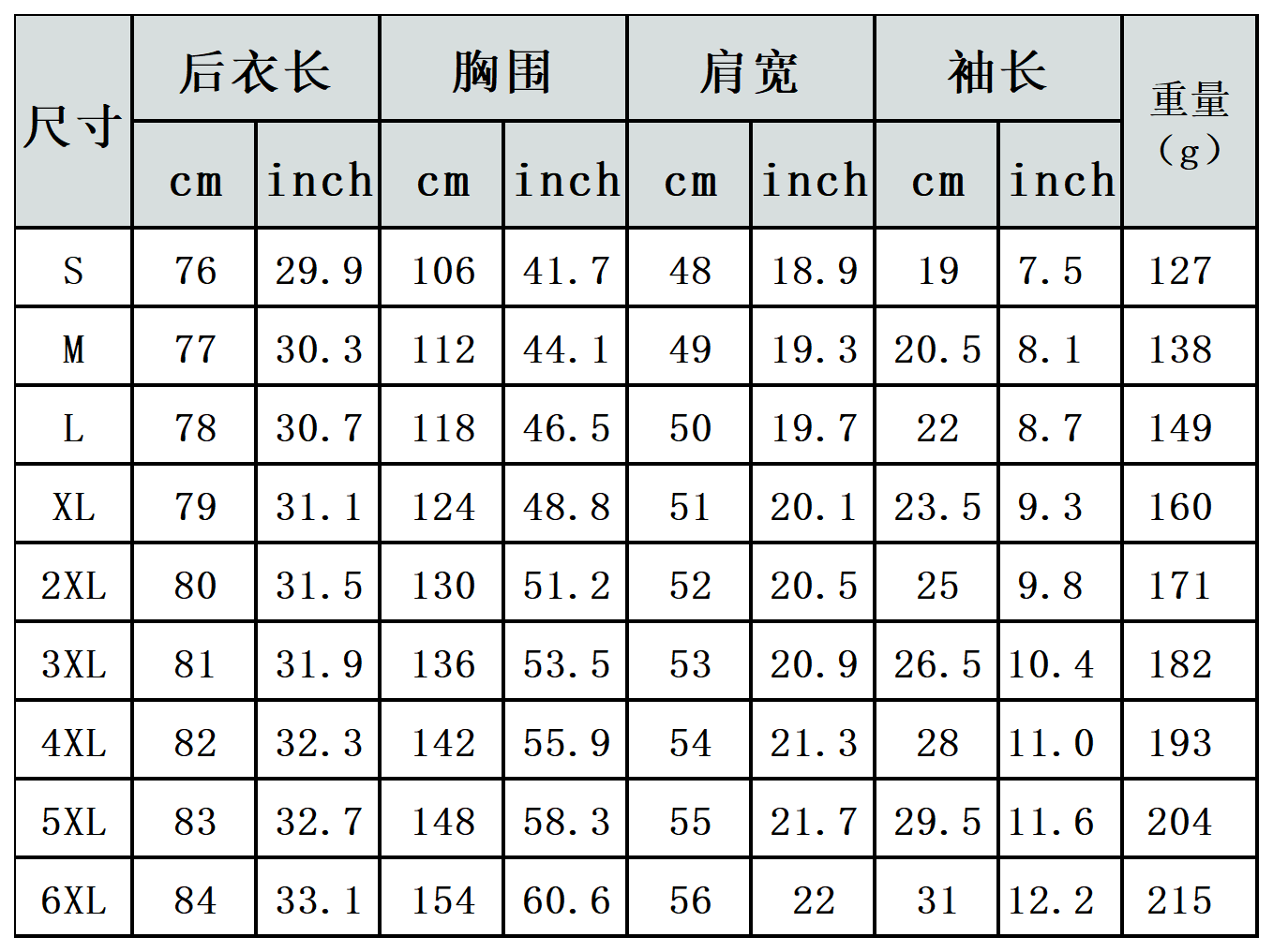 【特别说明】此尺码数据在衣服平铺下测量所得,因测量方法不同,误差在1-3cm内的属于正常现象