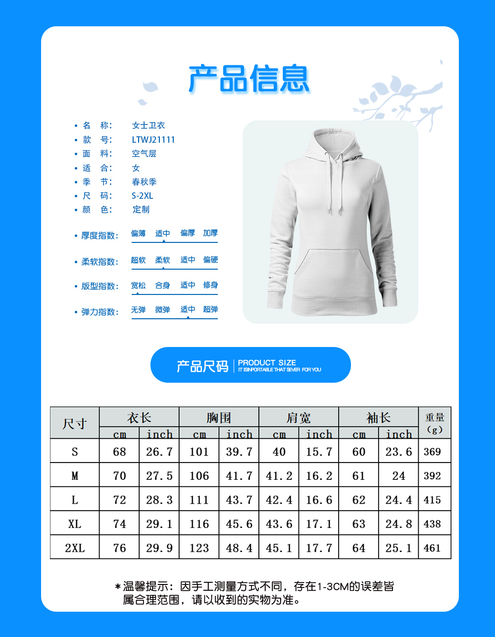 中文名称:女士卫衣英文名称:产品货号:LTWJ21111生产工艺: 满印印花产品材质: 空气层
