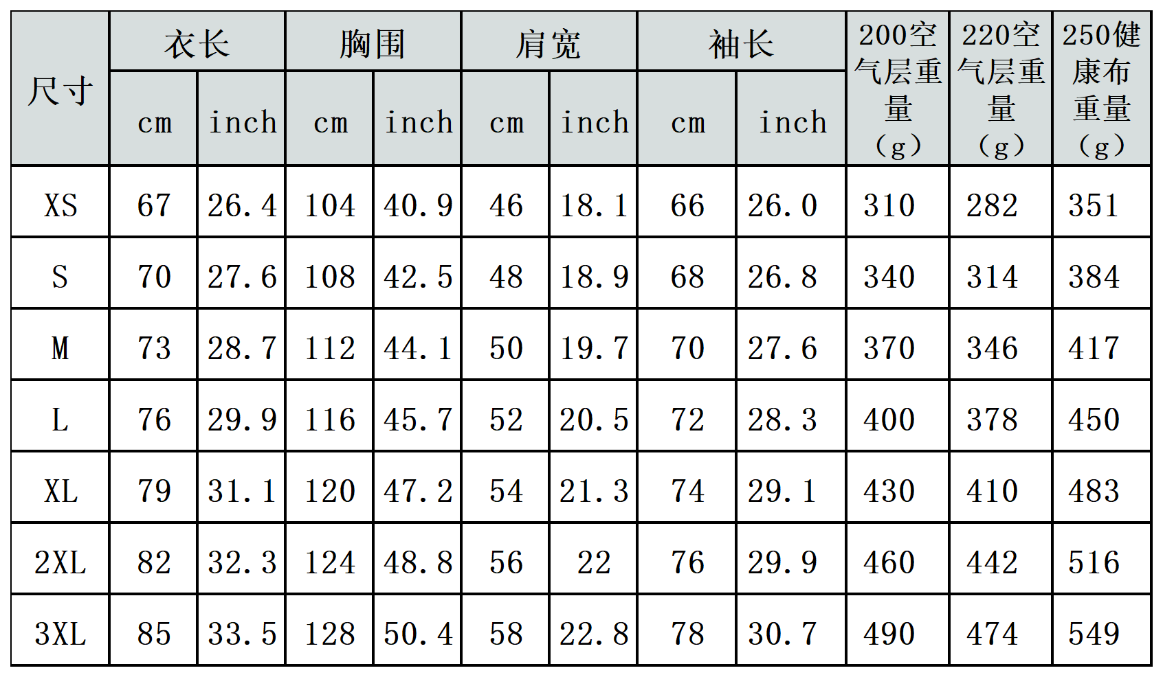 【特别说明】此尺码数据在衣服平铺下测量所得,因测量方法不同,误差在1-3cm内的属于正常现象