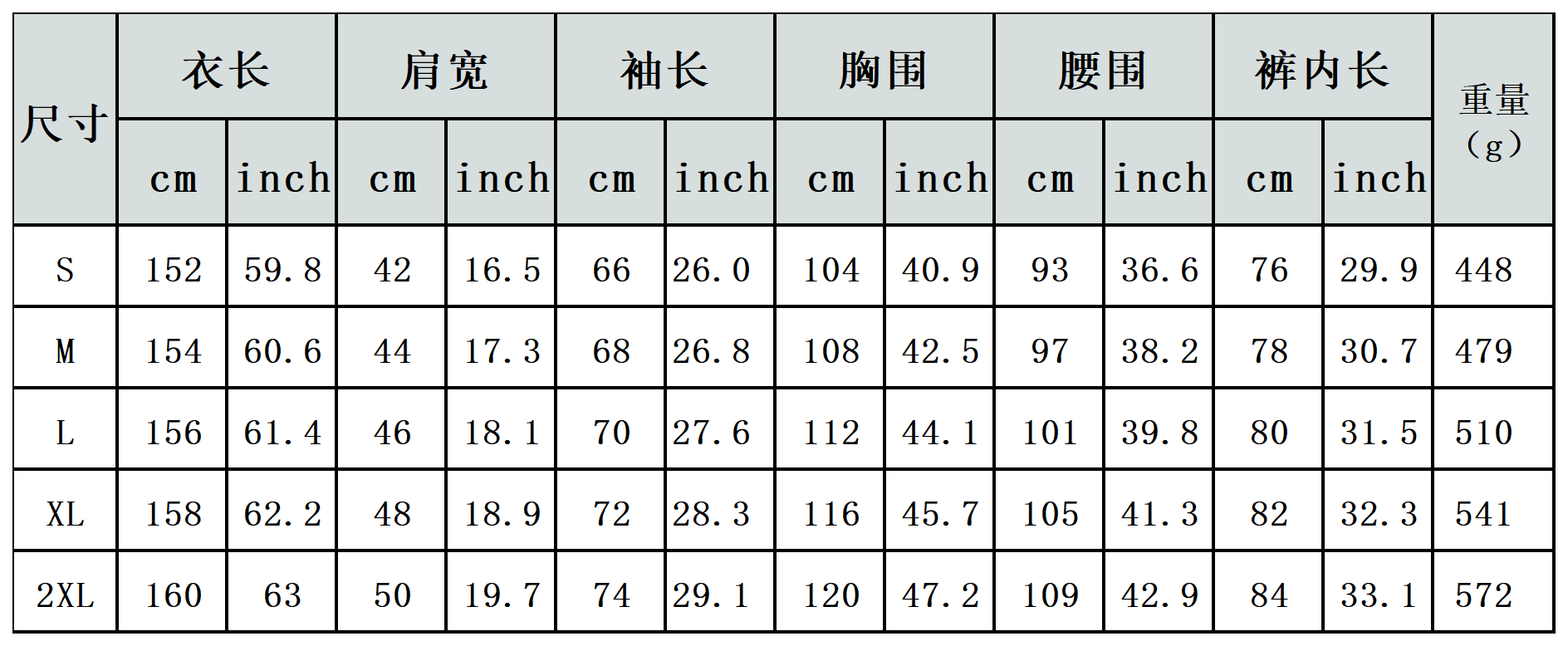 【特别说明】此尺码数据在衣服平铺下测量所得,因测量方法不同,误差在1-3cm内的属于正常现象