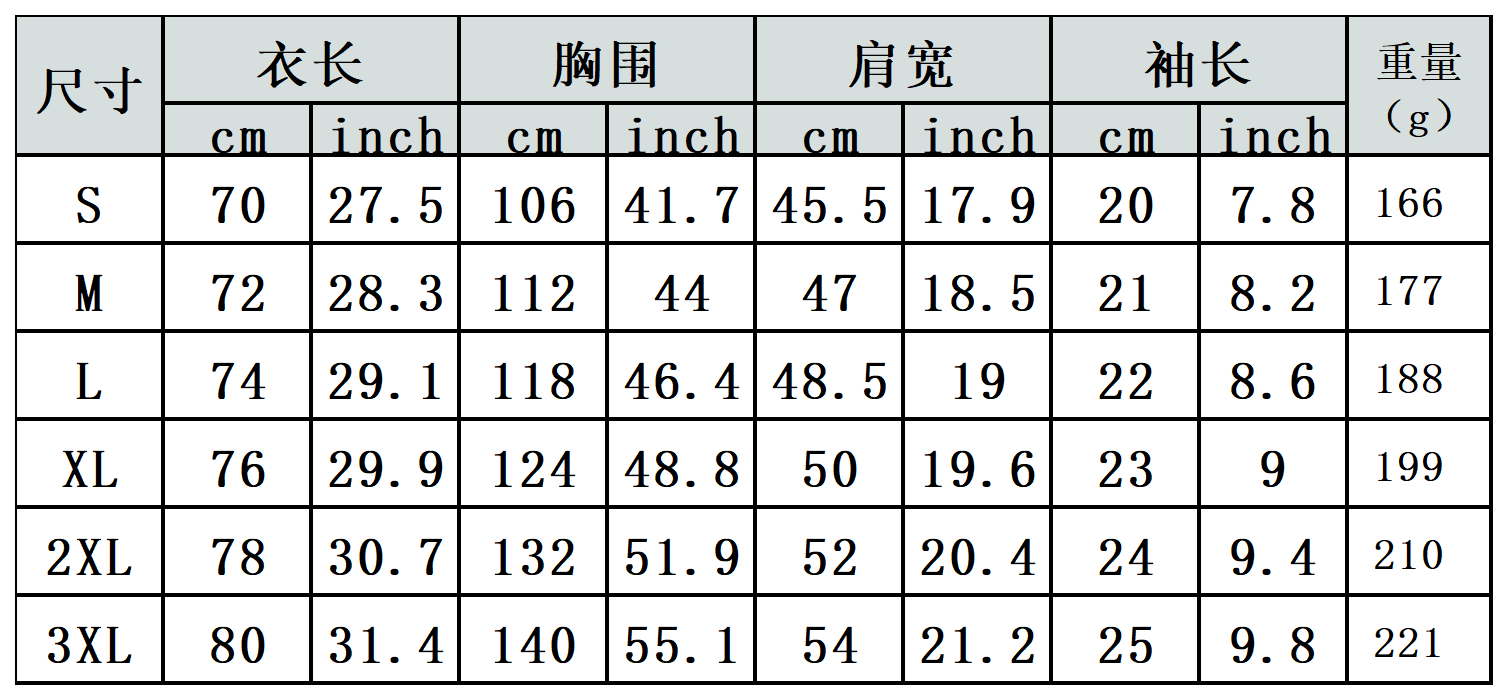【特别说明】此尺码数据在衣服平铺下测量所得,因测量方法不同,误差在1-3cm内的属于正常现象