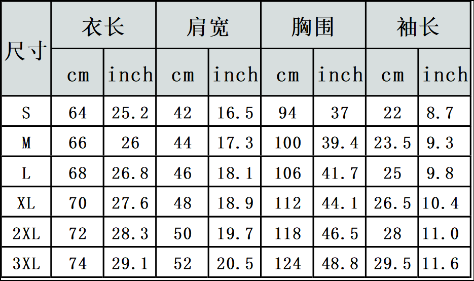 【特别说明】此尺码数据在衣服平铺下测量所得,因测量方法不同,误差在1-3cm内的属于正常现象