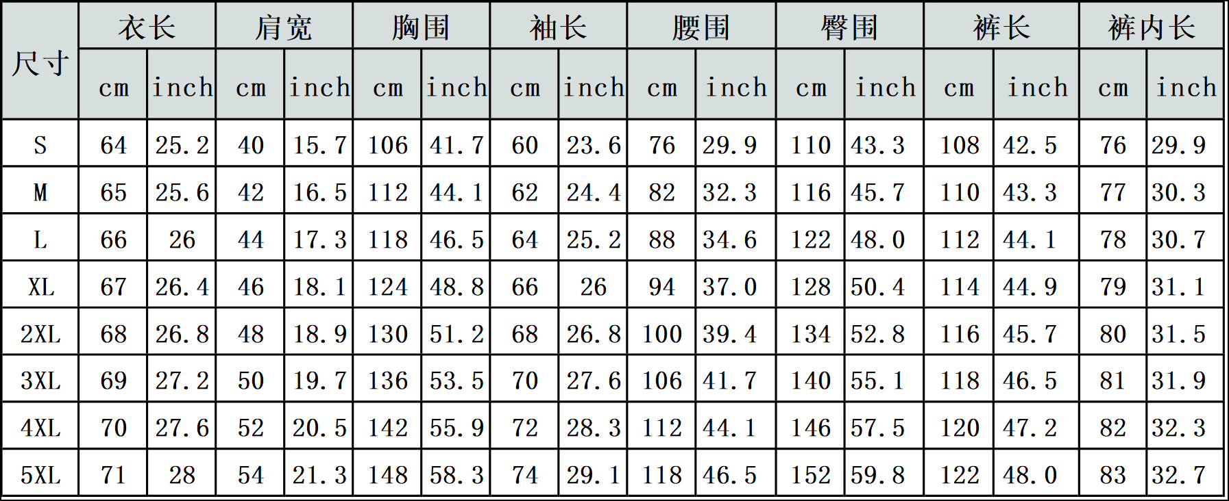 【特别说明】此尺码数据在衣服平铺下测量所得,因测量方法不同,误差在1-3cm内的属于正常现象