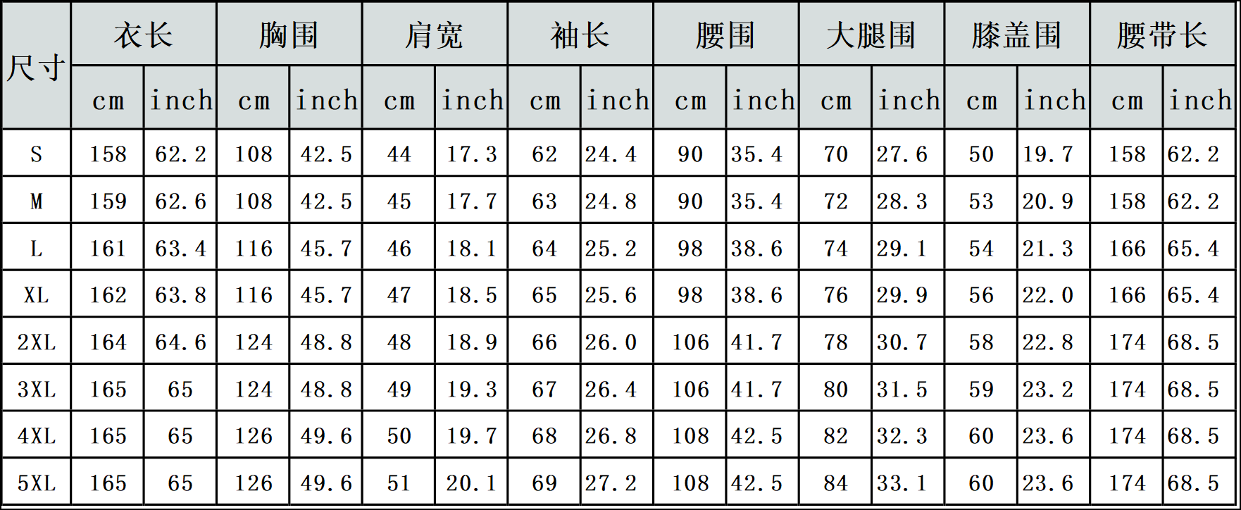 【特别说明】此尺码数据在衣服平铺下测量所得,因测量方法不同,误差在1-3cm内的属于正常现象