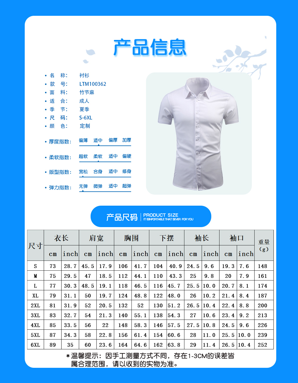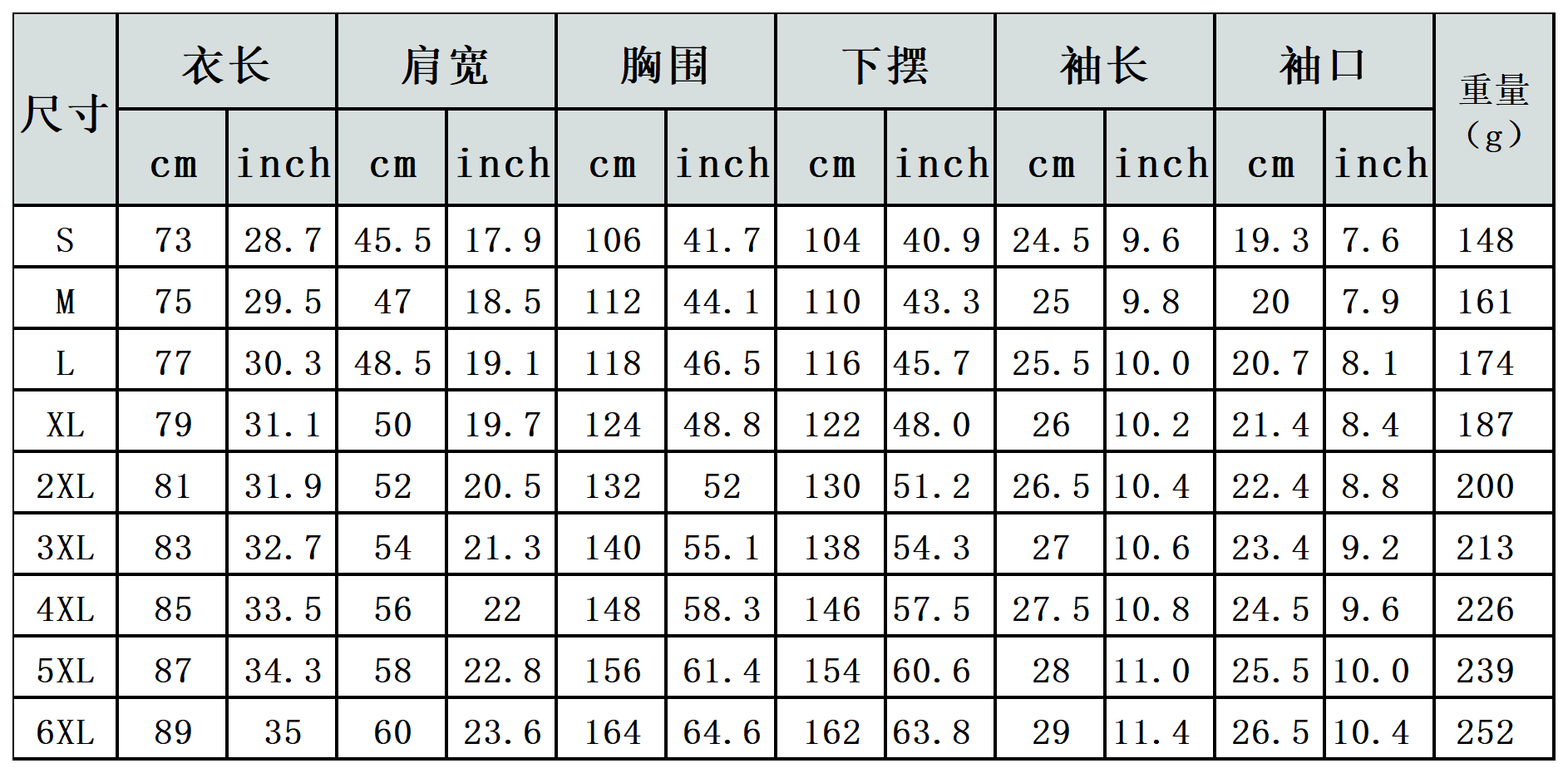 【特别说明】此尺码数据在衣服平铺下测量所得,因测量方法不同,误差在1-3cm内的属于正常现象