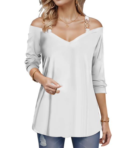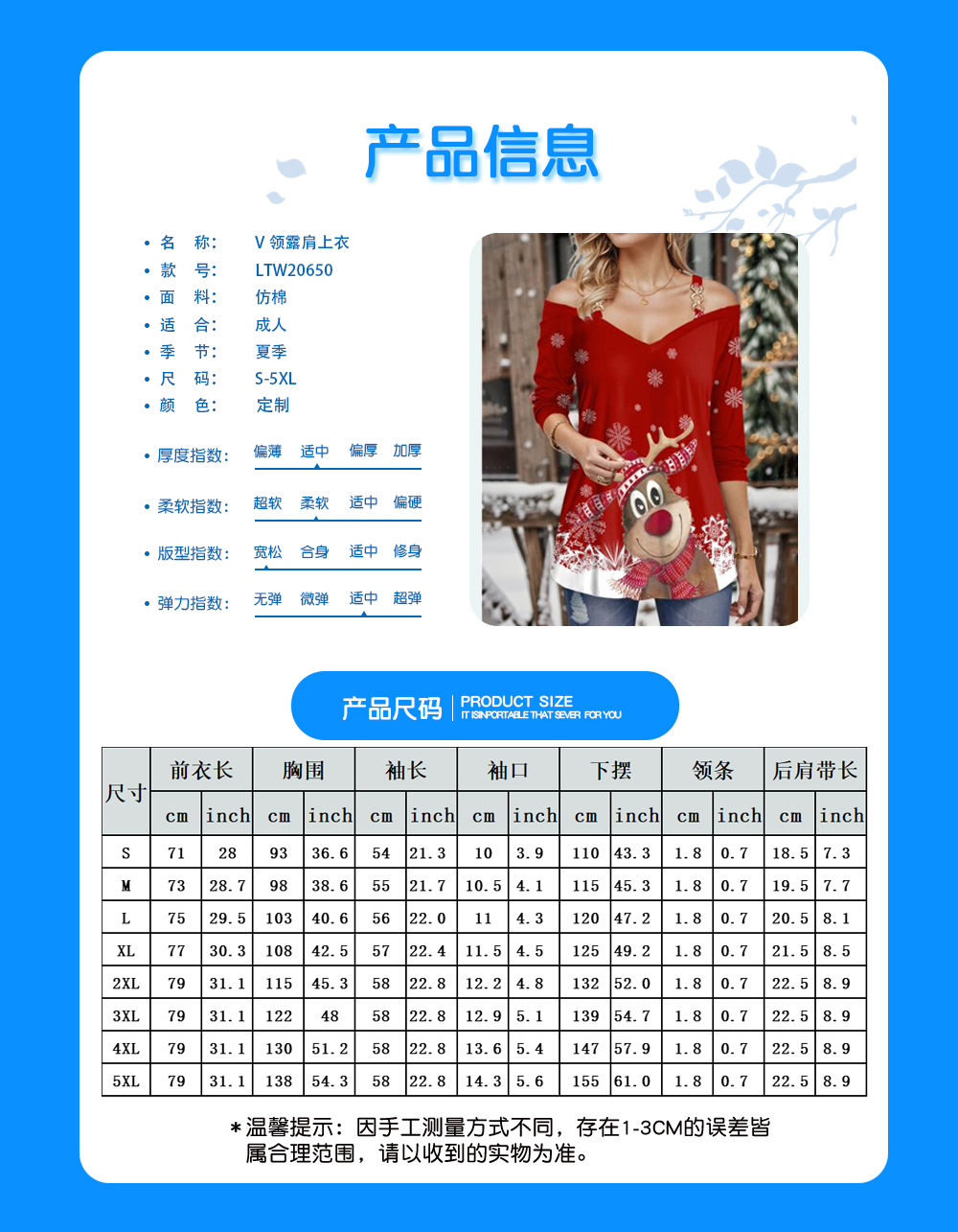 中文名称:V领露肩上衣英文名称:产品货号:LTW20650生产工艺: 满印印花产品材质: 仿棉